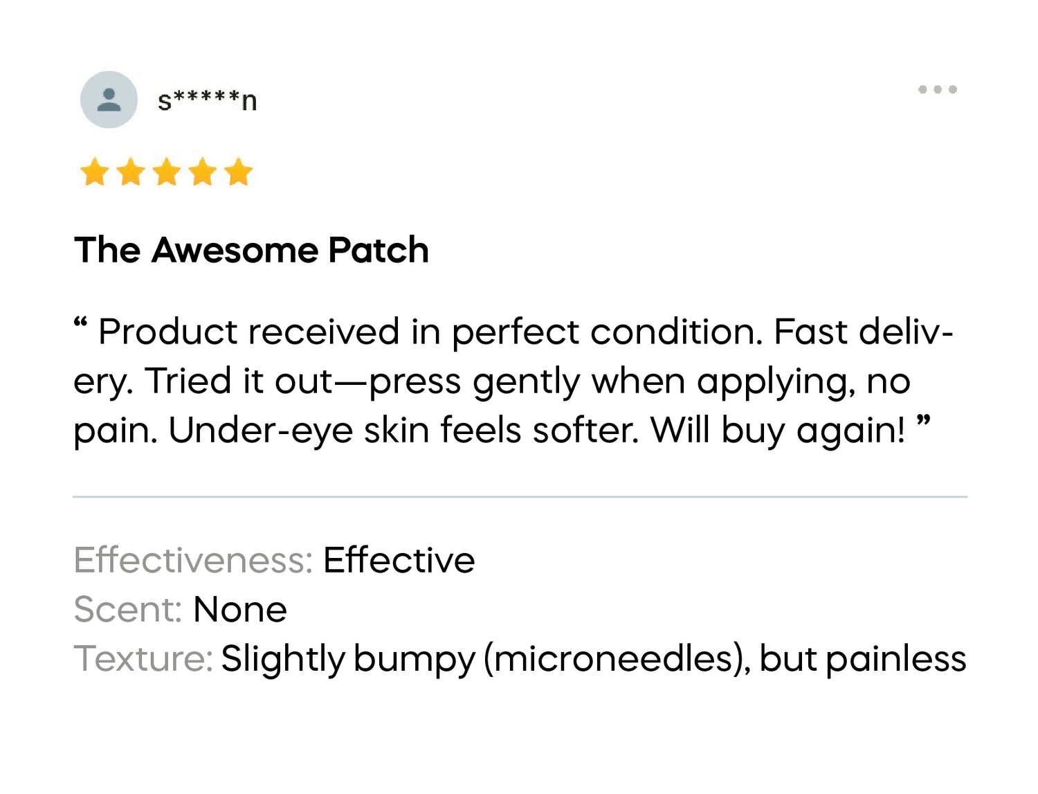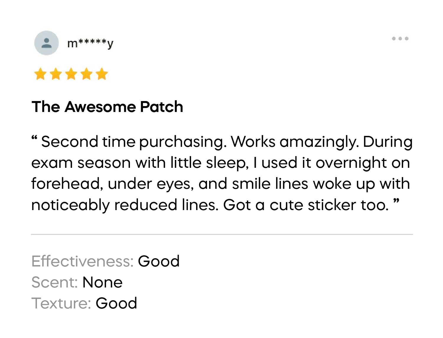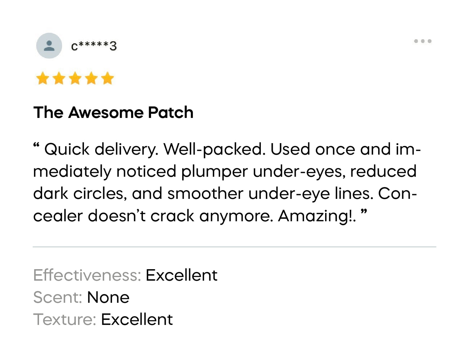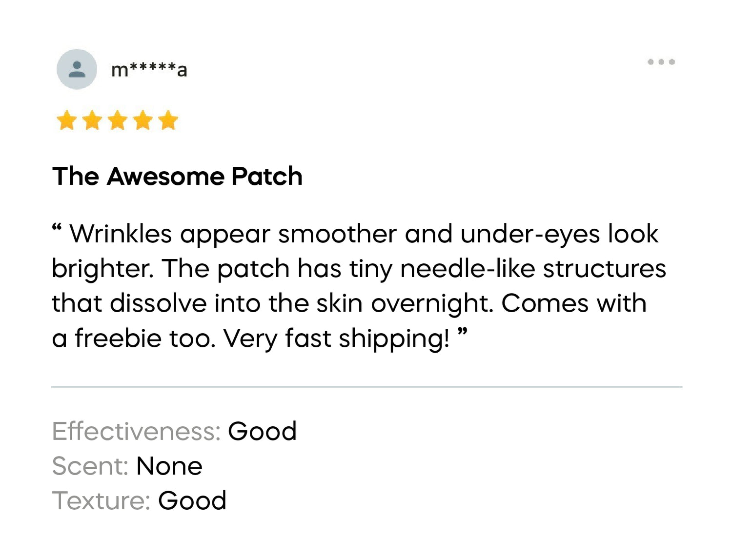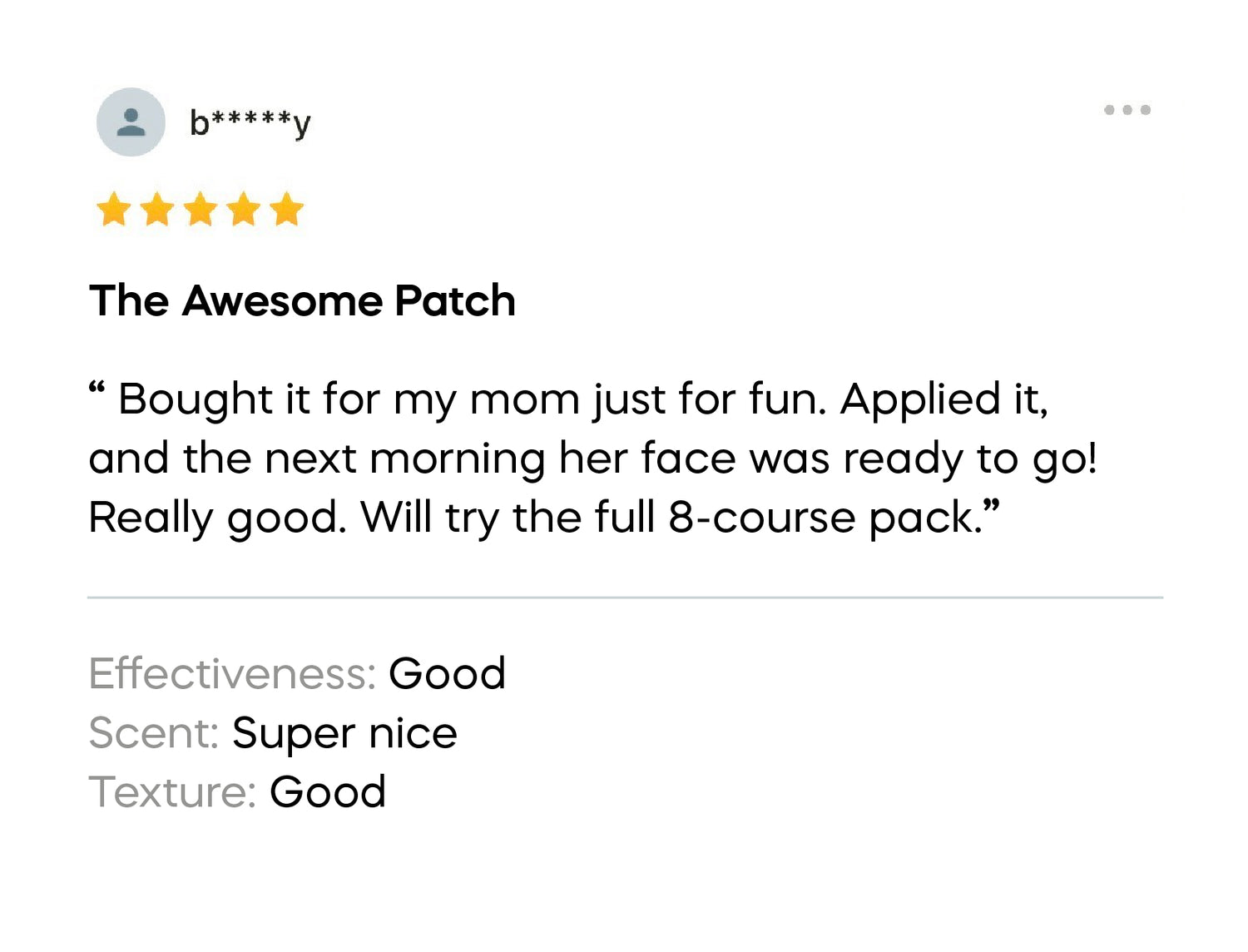 - Patch: Most users notice visibly smoother, brighter skin after the first use