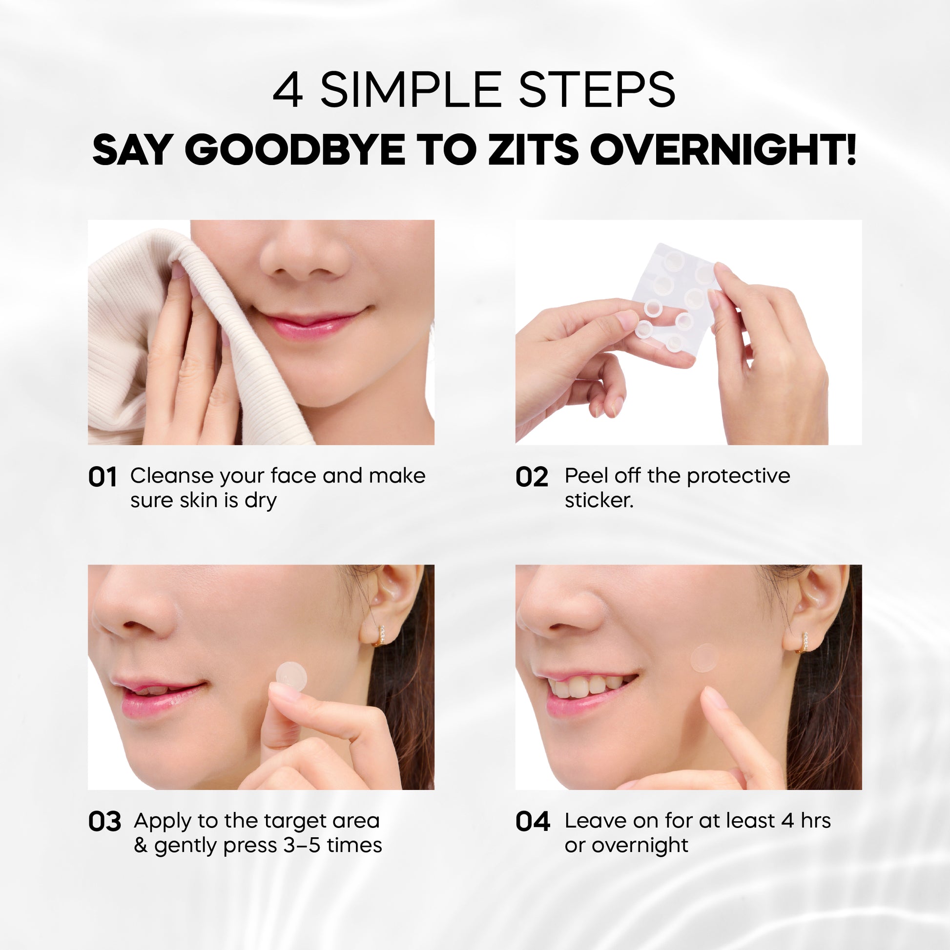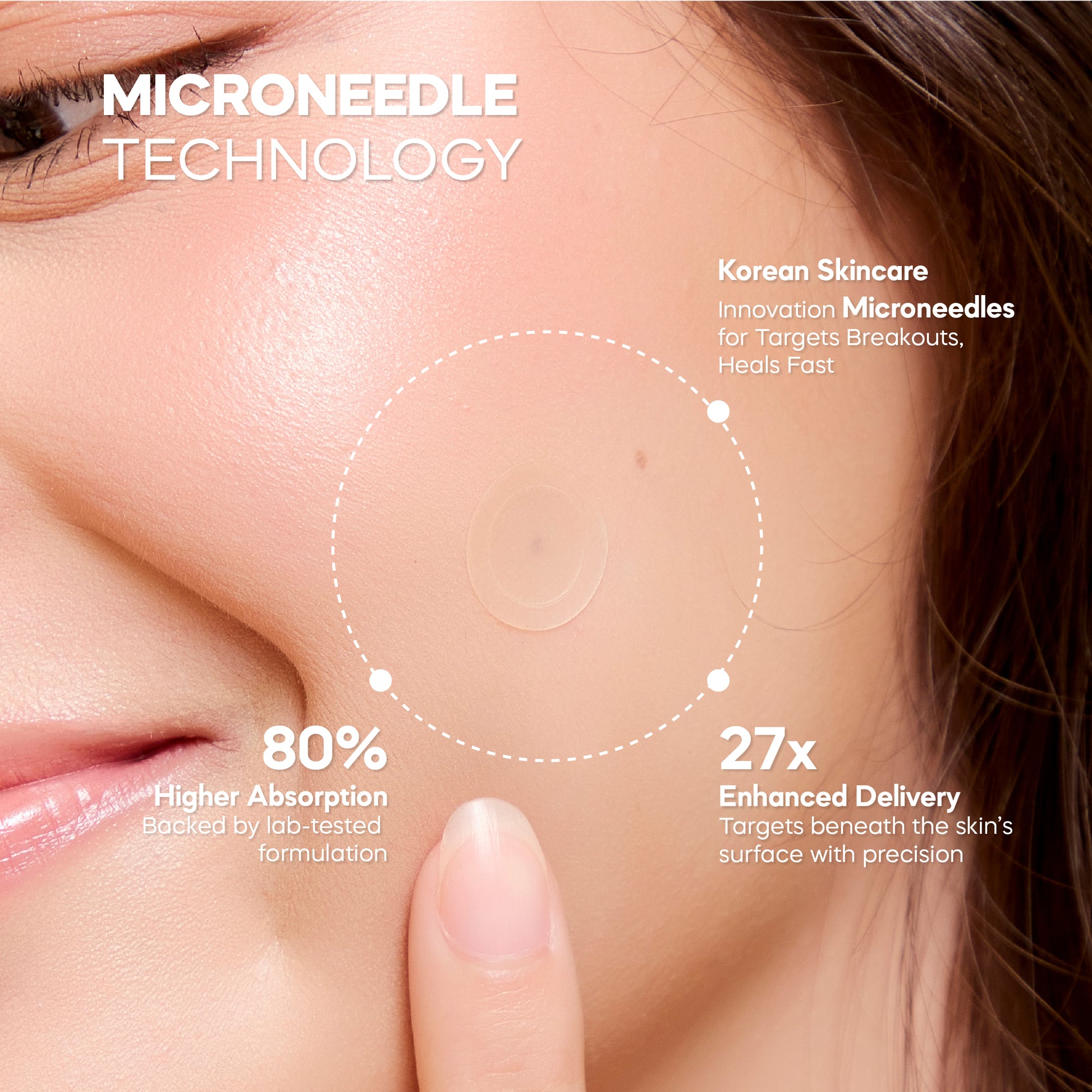 Step 2: Microneedle Acne Patch (The Dot): Delivers active ingredients directly to the problem area, ensuring deep penetration and effective treatment.