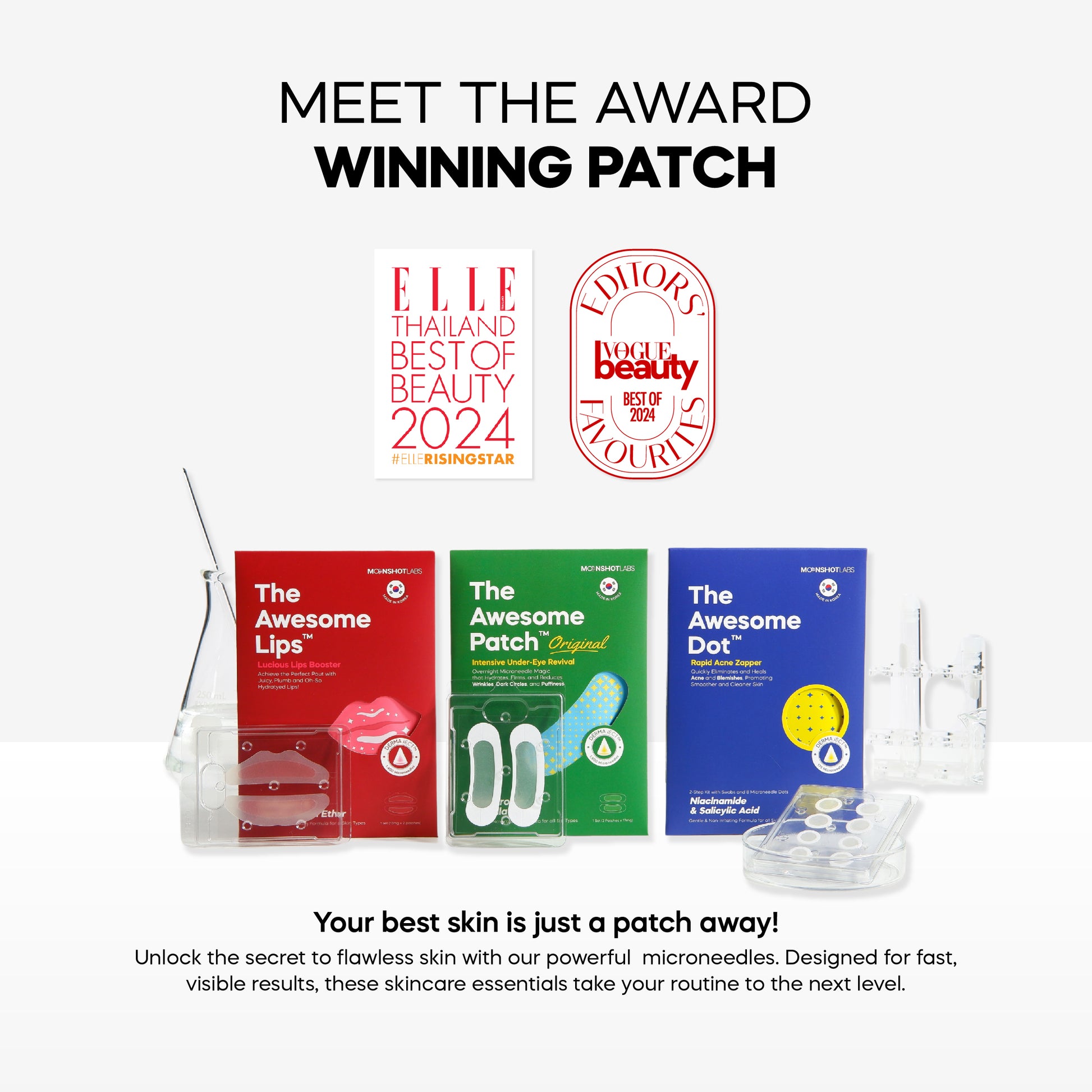 - The Awesome Lips: Place the patch on clean, dry lips before bed and wear it overnight for full hydration and plumping.