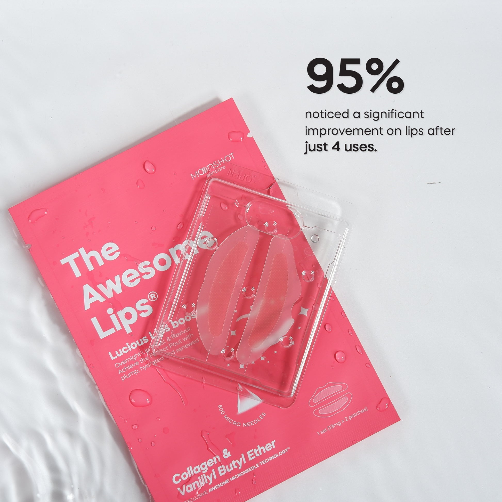 - The Awesome Lips: Place the patch on clean, dry lips before bed and wear it overnight for full hydration and plumping.